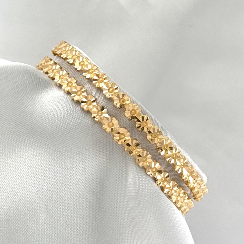 غويشة ذهب عيار 21 بتصميم 'الورد' تجمع بين الأناقة والرقة بألوان الذهب الخالص.