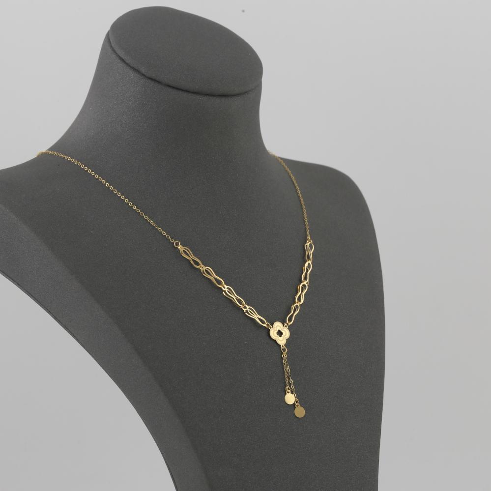 عقد ذهب حلقات نبتة رباعية منقوشة مع دلايات - عيار 21